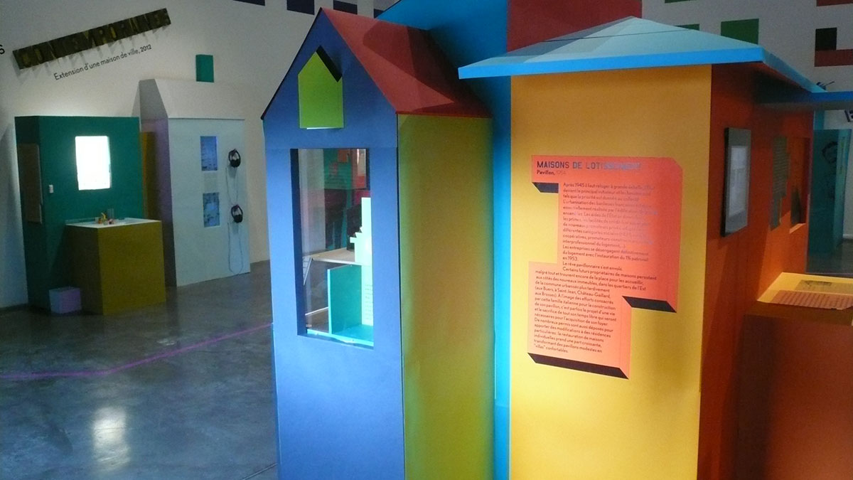 Constructions de carton et de papiers de couleur, les maisons racontent ce patrimoine de Villeurbanne. Dans ce grand pop-up de languettes, de roues, de clapets, de jeux de cubes ou de maquettes… le visiteur plie et déplie le décor de papier pour découvrir les différents contenus.